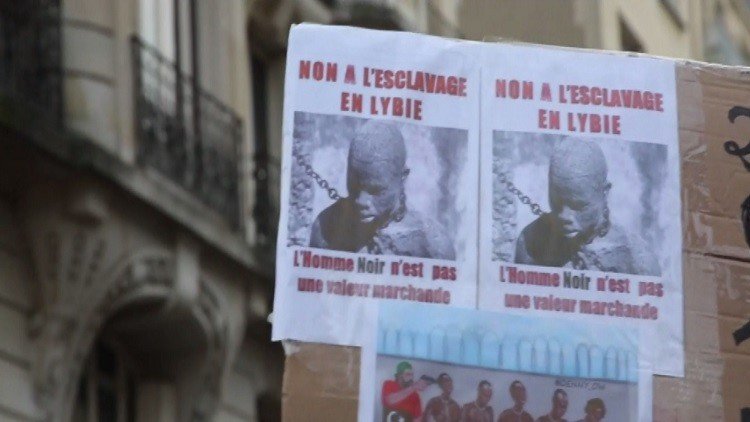 تظاهر العديد من المواطنين الفرنسيين ونشطاء حقوق الإنسان أمام السفارة الليبية في باريس للتعبير عن رفضهم للعبودية مطالبين السلطات الليبية والمجتمع الدولي لوضع حد لهذه الجرائم.