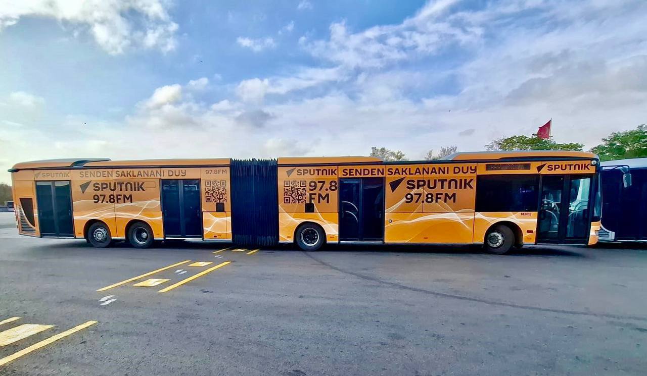 لوّنت هذه الحافلات باللون الأصفر الذي يميز شعار قناة "سبوتنيك"، وكتبت عليها تردد القناة على الراديو، كما كتبت عليها عبارة:"شغّل الصوت وستسمع ما أخفي عنك" وفقا لما ذكرته قناة Sputnik Türkiye على تليغرام.