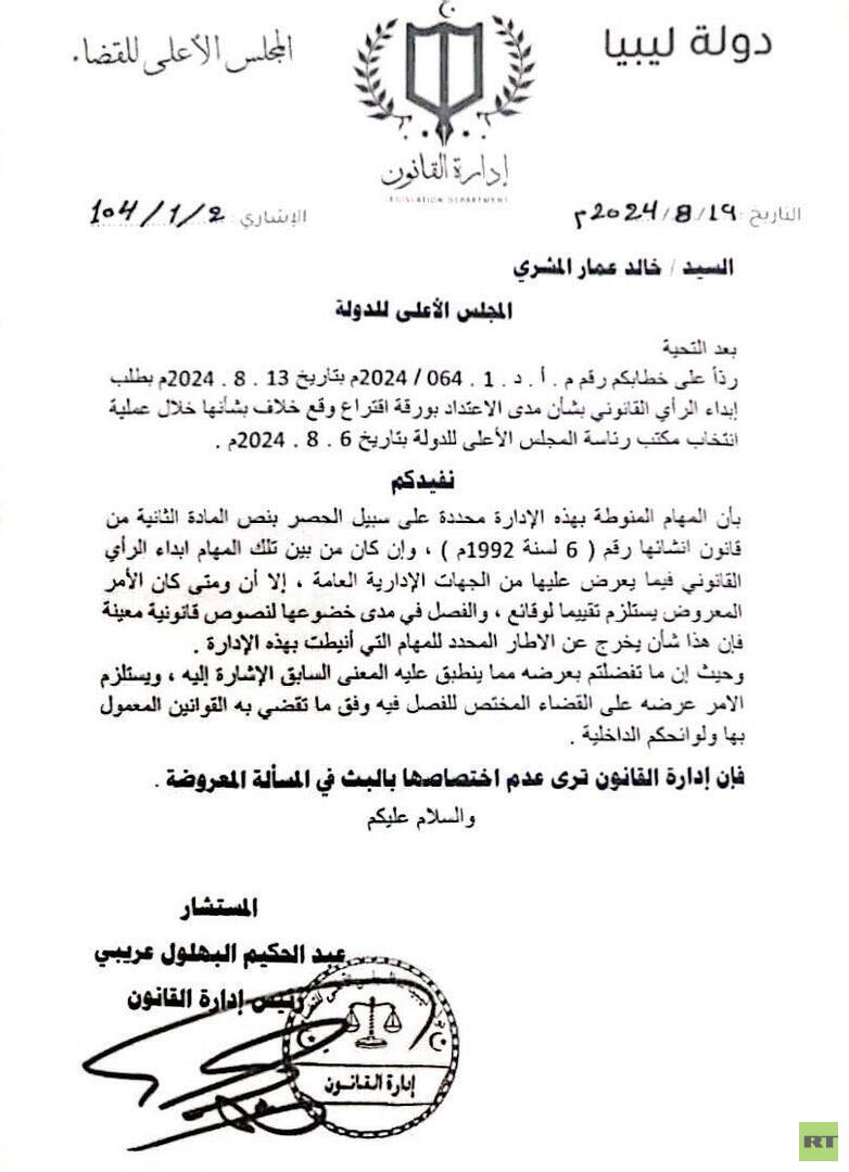 وفي السياق ذاته كانت اللجنة القانونية بالمجلس الأعلى للدولة قد خاطبت إدارة القانون بالمجلس الأعلى للقضاء لطلب الرأي القانوني في ورقة الاقتراع المختلف عليها مما يبرز أهمية إيجاد حل قانوني يضمن سلامة الإجراءات الانتخابية داخل المجلس.