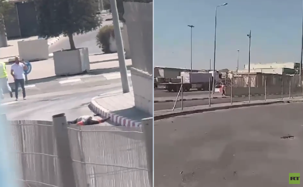 أظهر مقطع فيديو مصور، لحظة تنفيذ عملية إطلاق النار على معبر الكرامة ومقتل 3 حراس أمن إسرائيليين.