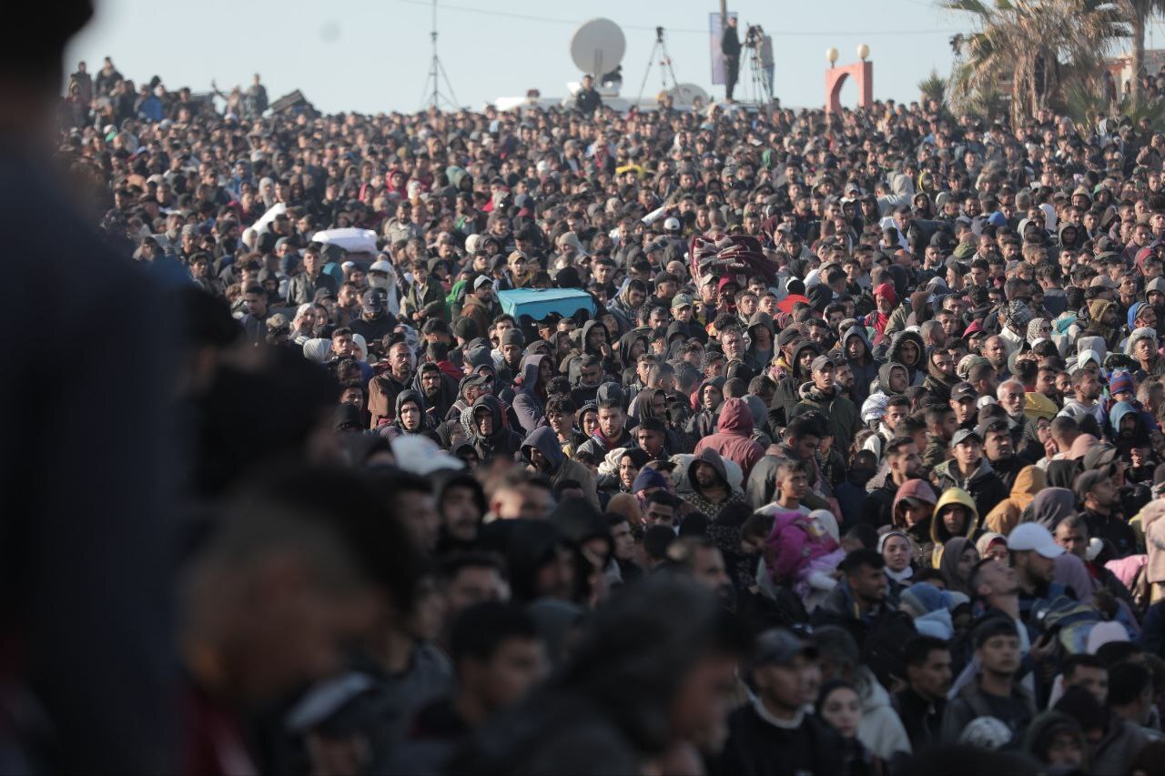 تجمع آلاف النازحين الفلسطينيين لليوم الثاني على التوالي على تبة النويري قرب ممر "نتساريم"، أملا بالعودة إلى شمال قطاع غزة لكن الجيش يمنعهم حتى الآن.