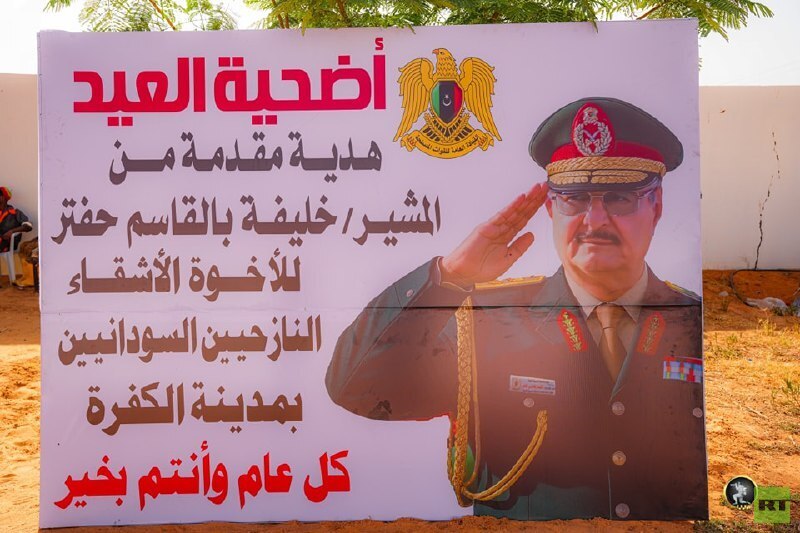 وتمثلت هذه المبادرة في ذبح وتوزيع لحوم 100 رأس من الإبل و50 رأسا من الأبقار لصالح الأسر السودانية النازحة المقيمة في مدينة الكفرة، وذلك بتعليمات مباشرة من القائد العام المشير أركان حرب خليفة أبو القاسم حفتر.