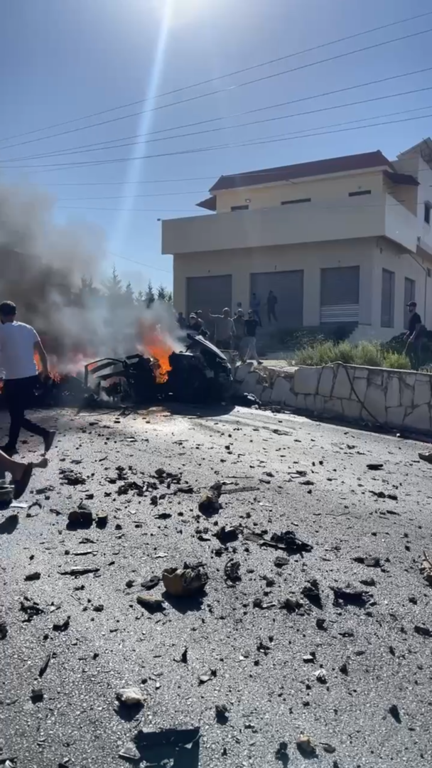 وأبانت لقطات وثقتها كاميرا مراقبة، لحظة إصابة السيارة على الطريق بالصاروخ وانفجارها جراء الغارة الإسرائيلية، وأكد مراسلنا أن هذا الهجوم أسفر عن مقتل شخص.