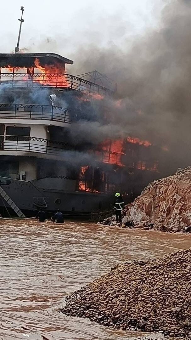 التهم حريق هائل باخرة سياحية مصرية في محافظة أسوان جنوبي البلاد، دون تسجيل إصابات نظرا لعدم وجود سياح أو أطقم عاملين على متنها.