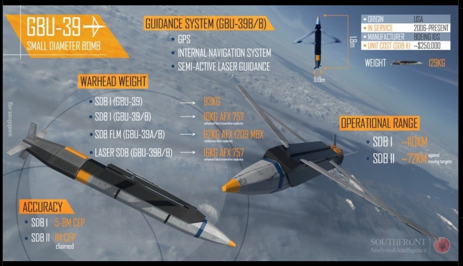 وأشارت إلى أنها قنبلة انزلاقية من طراز GBU-39B من إنتاج شركة بوينغ والولايات المتحدة.