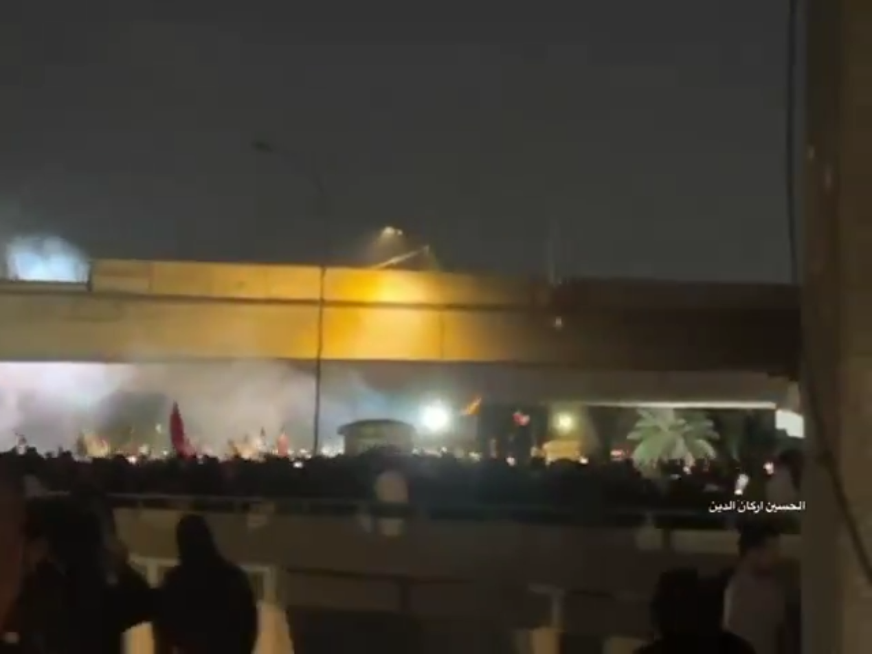 ونقلت قناة "السومرية" العراقية عن مصدر أمني، أن قوات حفظ القانون أطلقت القنابل الصوتية بالقرب من الجسر المعلق وسط بغداد بعد محاولة متظاهرين غاضبين اقتحام المنطقة الخضراء حيث تقع السفارة الأمريكية احتجاجا على استشهاد المرشد الإيراني السيد علي الخامنئي".