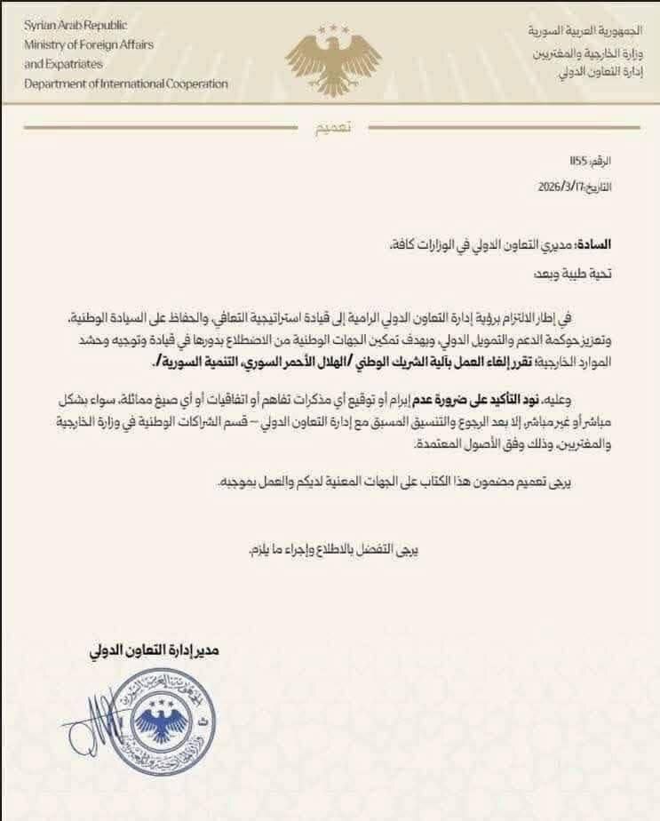ويعني هذا الإجراء أن التنسيق مع المنظمات الدولية سيجري حصراً عبر القنوات الرسمية، في إطار سعي الحكومة إلى تنظيم عمل الشراكات الدولية وتعزيز الإشراف على الاتفاقيات الموقعة مع الجهات الخارجية.