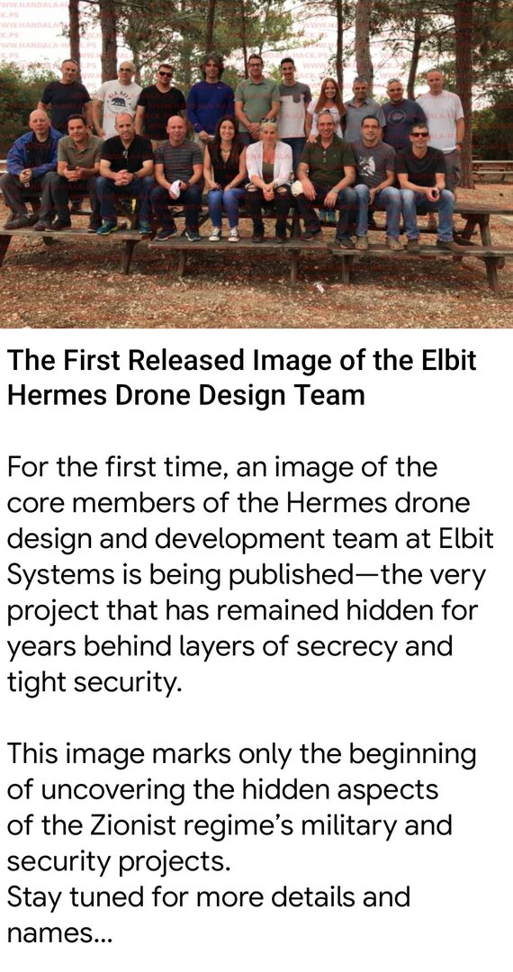 وتضمنت الصورة التي نشرها الحساب النص التالي: "أول صورة لفريق تصميم طائرة هرمس المسيرة في إلبيت. لأول مرة، صورة للأعضاء الأساسيين لفريق تصميم طائرة هرمس المسيرة في نظام إلبيت، هذا المشروع الذي ظل مخفيا لسنوات خلف طبقات من السرية والأمن المشدد".