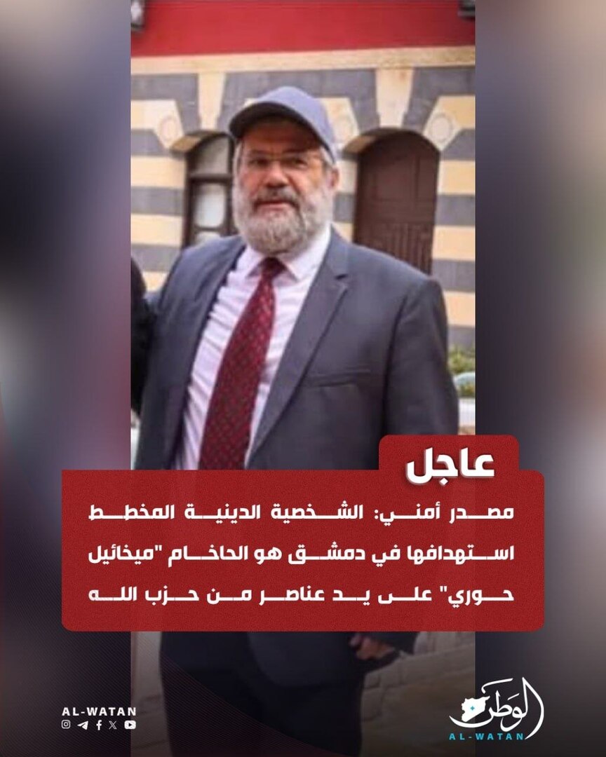 كشف مصدر أمني سوري أن الشخصية الدينية التي كان من المخطط استهدافها على أيدي عناصر ممولين من "حزب الله" اللبناني في دمشق، هي الحاخام ميخائيل حوري.