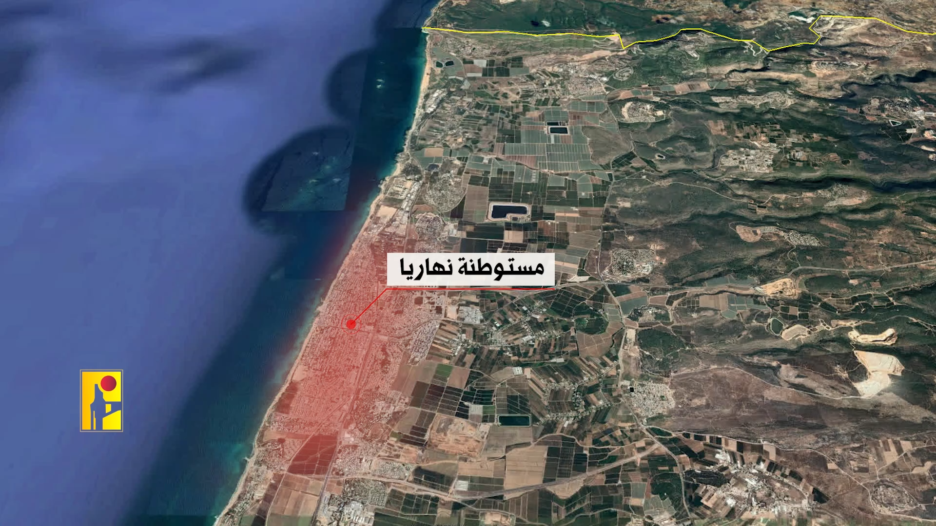 ونشر الإعلام الحربي أيضا "مشاهد من عملية استهداف المقاومة الإسلامية مستوطنة نهاريا شمال فلسطين المحتلة بسرب من المسيّرات الانقضاضية".