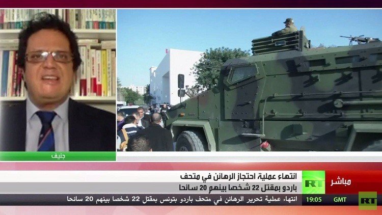وفي وقت سابق من الأربعاء أفادت مراسلتنا في تونس نقلا عن مصادر في وزارتي الداخلية والصحة بأن عدد قتلى الهجوم الذي استهدف متحف باردو وسط العاصمة وتخلله احتجاز رهائن، ارتفع إلى 22 قتيلا و42 جريحا.