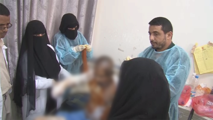 تستقبل مستشفيات صنعاء العشرات من الجرحى المدنيين يوميا، من ضمنهم العديد من النساء والأطفال، بسبب الحرب الدائرة في اليمن وغارات التحالف العربي على المدينة.