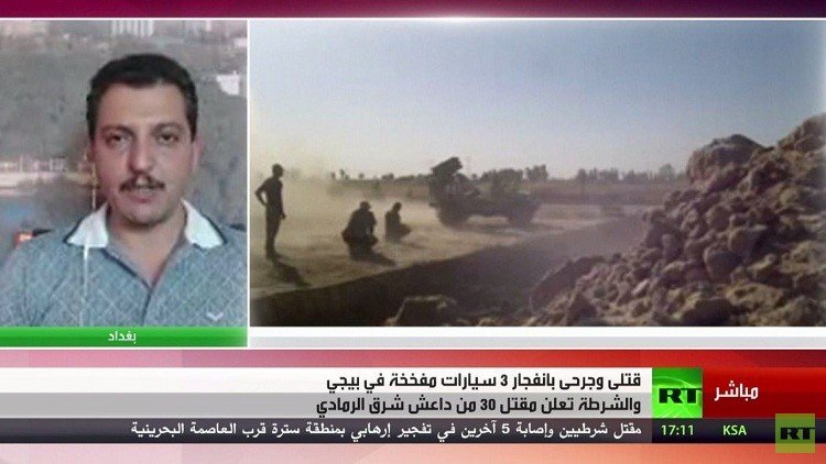 أسفر تفجير 3 سيارات مفخخة في مدينة بيجي العراقية عن مقتل وجرح 26 شخصا على الأقل، فيما تمكنت قوة أمنية من إحباط هجوم انتحاري بشاحنة مفخخة في الرمادي.