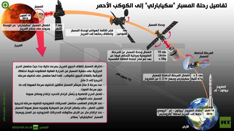 وفي أكتوبر/ تشرين الأول القادم سينفصل مسبار "سكياباريلي"، الذي أطلقت عليه تلك التسمية نسبة إلى العالم الإيطالي المكتشف للقنوات على سطح المريخ، عن المحطة الأم الدائرة حول المريخ ليهبط على سطحه في منطقته الاستوائية.