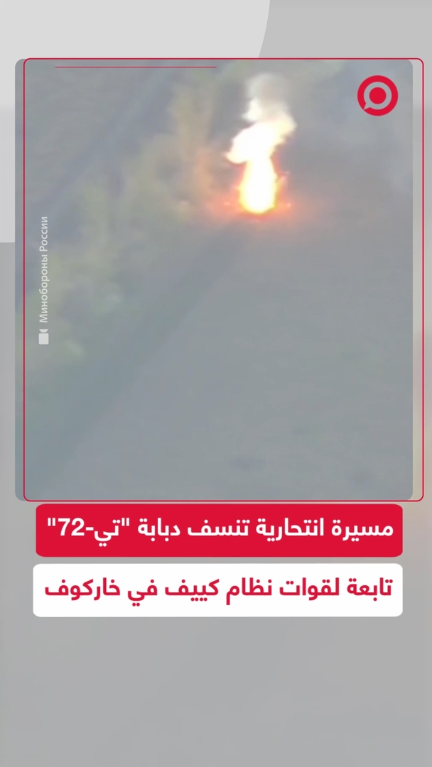 رصدوها باستخدام معدات الاستطلاع الجوي.. الجيش الروسي يستهدف بمسيرة انتحارية طراز "FPV"، دبابة بحوزة قوات نظام كييف من طراز "تي-72" في منطقة خاركوف، مما أدى إلى اشتعال النيران فيها وتدميرها بشكل تام.