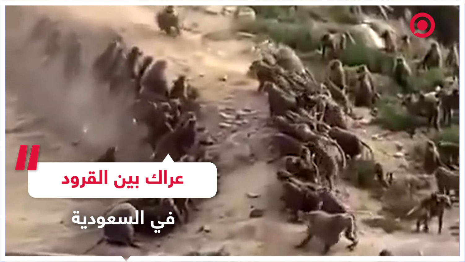 رواد مواقع التواصل يتداولون فيديو لمجموعتين من قردة البابون في محافظة النماص السعودية. المركز الوطني لتنمية الحياة الفطرية أفاد بأن فرق المركز بدأ إخلاء الموقع من القرود ضمن أحد البرامج لمعالجة تزايد أعداد هذا النوع من القرود