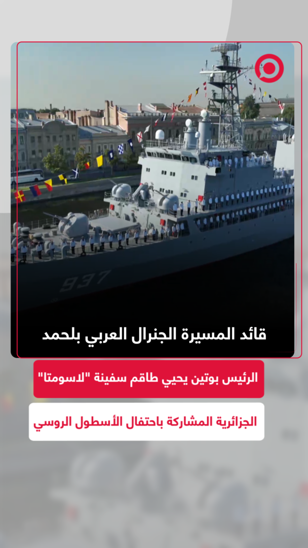 الرئيس الروسي فلاديمير بوتين يحيي طاقم سفينة "لاسومتا" الجزائرية الحربية المشاركة في احتفالات "يوم الأسطول الحربي الروسي" بمدينة سان بطرسبورغ.