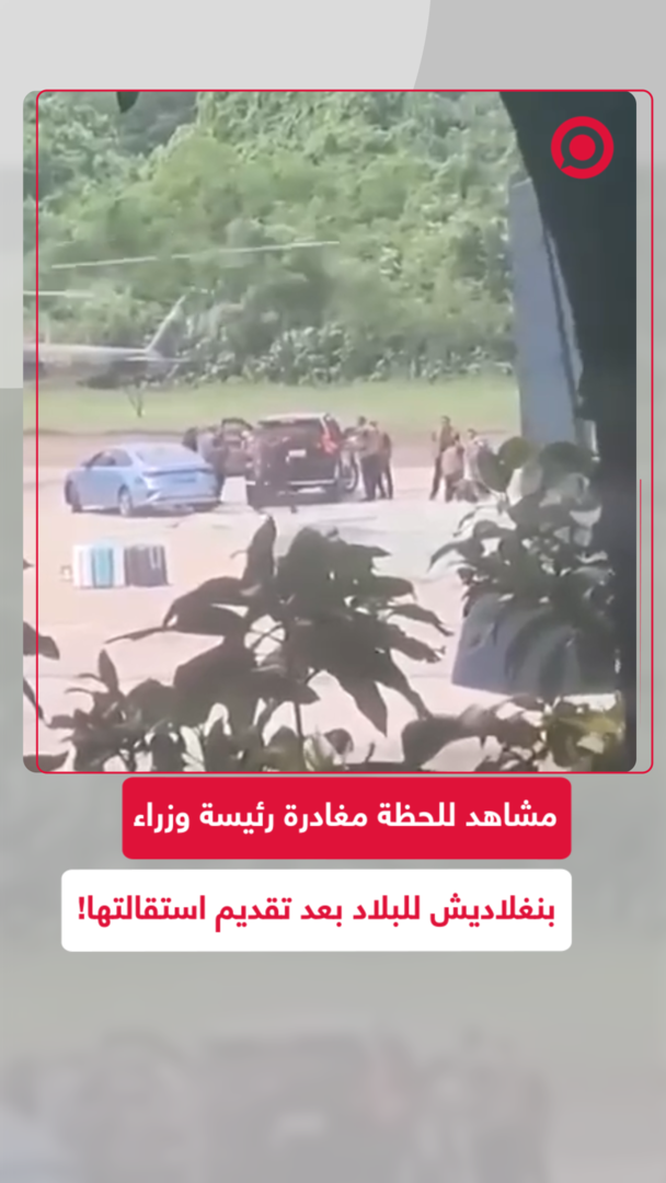 مشاهد متداولة توثق لحظة مغادرة رئيسة وزراء بنغلاديش الشيخة حسينة، لعاصمة البلاد دكا بعد تقديم استقالتها متوجهة نحو الهند على متن مروحية.