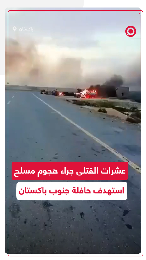 ما لا يقل عن 23 شخصا لقوا مصرعهم جراء هجوم مسلح استهدف حافلة جنوب غرب باكستان. المسلحون أحرقوا أكثر من 10 مركبات كانت موجودة في موقع الحادث.