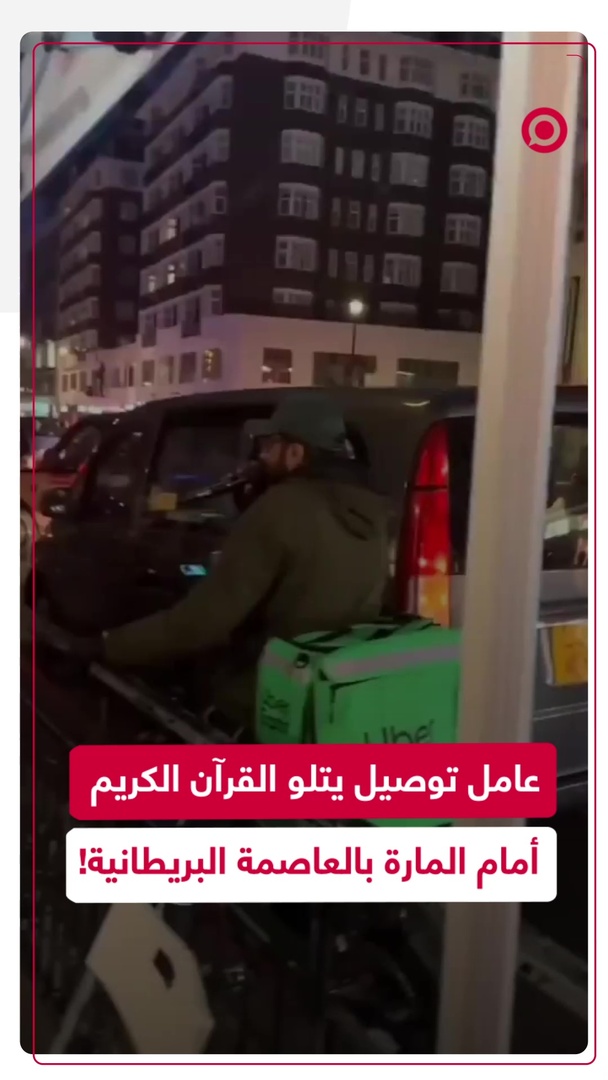 عامل توصيل في لندن يستغل الازدحام المروري ليتلو القرآن الكريم أمام المارة