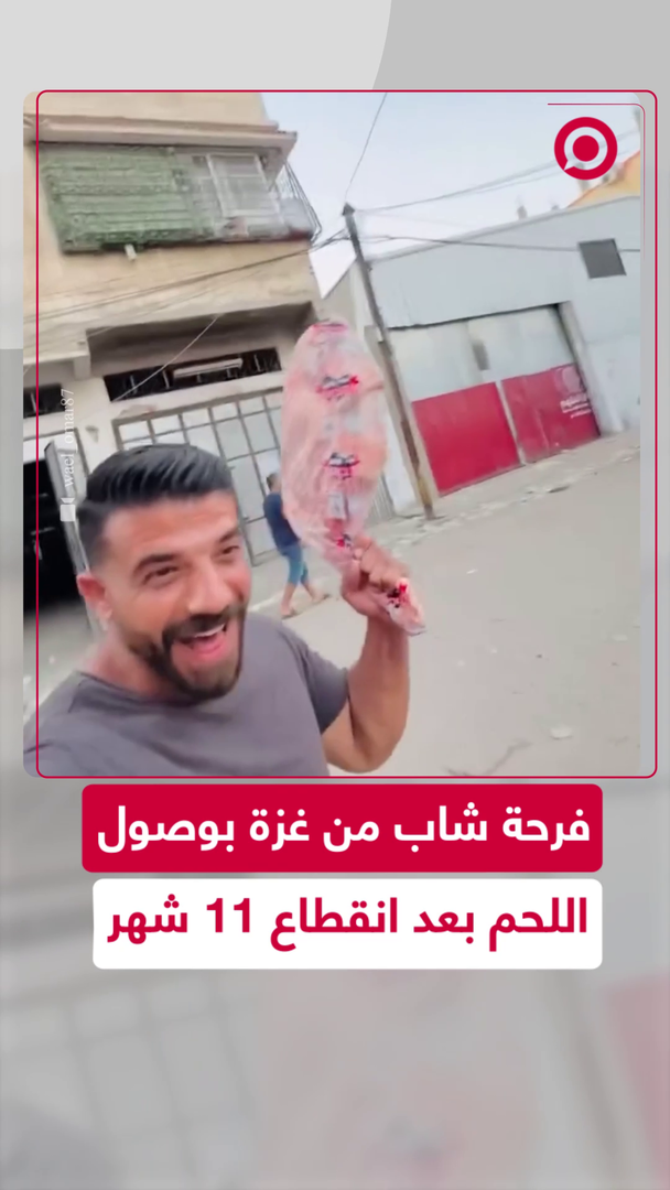 فرحة شاب من قطاع غزة بوصول اللحم لهم بعد انقطاع 11 شهرا