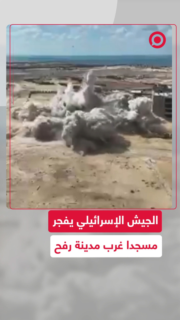 القوات الإسرائيلية تفجر مسجد العطار غرب مدينة رفح في قطاع غزة