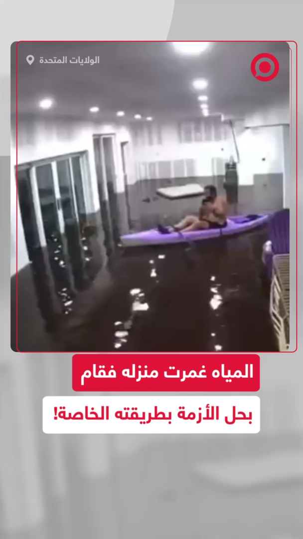 شر البلية ما يضحك.. أمريكي يتنقل داخل منزله باستخدام قارب بعد إعصار عنيف تسبب بفيضانات عارمة غمرت الطرقات والبيوت بولاية فلوريدا الأمريكية.