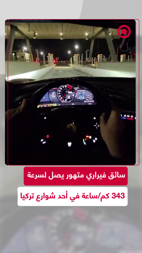 سائق سيارة فيراري الرياضية يصل لسرعة 343 كم/ساعة في أحد شوارع تركيا.