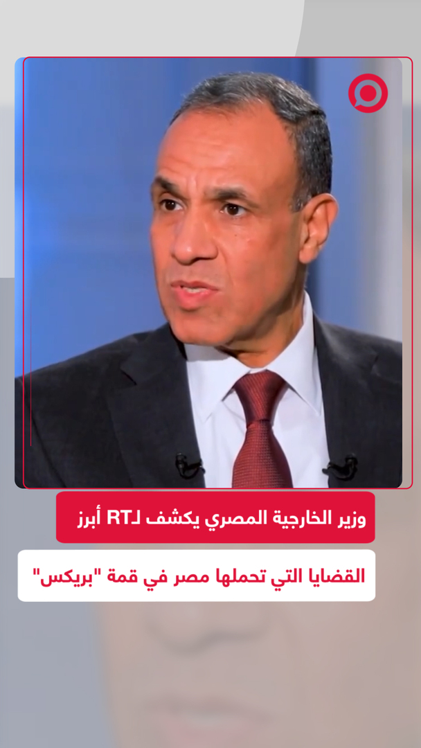 وزير الخارجية المصري الدكتور بدر عبدالعاطي يتحدث عن أبرز النقاط والقضايا التي تحملها مصر خلال قمة "بريكس" في حديث خاص لـ RT، ضمن برنامج "نيوزميكر".
