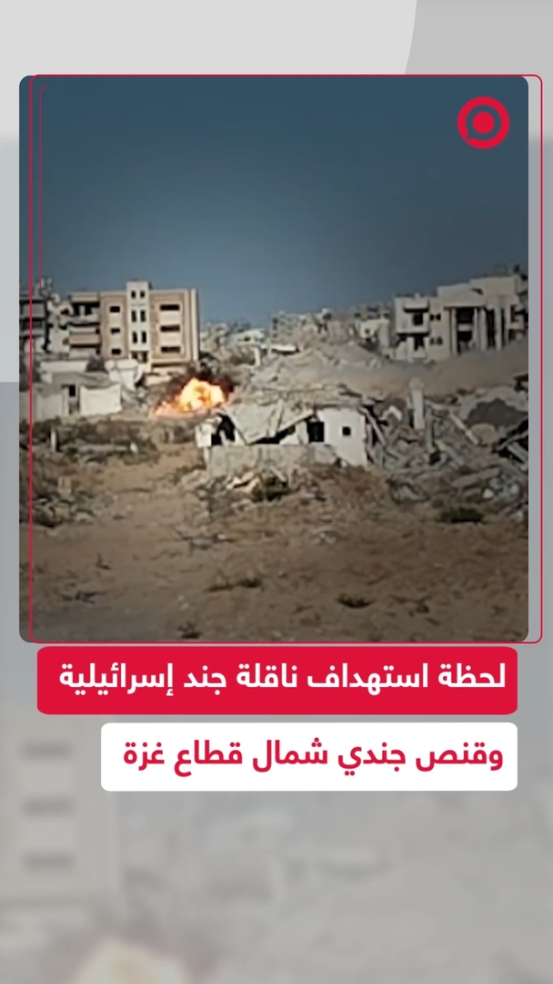 "كتائب القسام" تبث مشاهد توثق لحظة استهداف ناقلة جند إسرائيلية وقنص جندي، في محيط منطقة الخزندار شمال حي الشيخ رضوان شمال قطاع غزة.