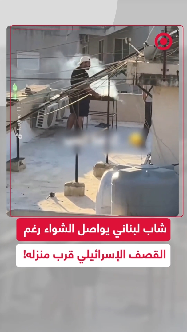 شاب لبناني يواصل الشواء رغم القصف الإسرائيلي في محيط منزله
