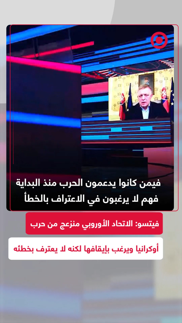 "الغرب يرغب في إيقاف حرب أوكرانيا لكنه لا يعترف بخطئه".. رئيس الوزراء السلوفاكي روبرت فيتسو، يؤكد أن لسان حال الاتحاد الأوروبي الآن يخبر الأوكرانيين "هذه أسلحتكم، وهذه أموالكم، قاتلوا، فقط لا تزعجونا بهذه الحرب".