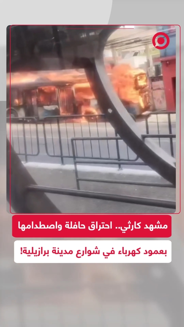 احتراق حافلة واصطدامها بعمود كهرباء أثناء سيرها في أحد شوارع البرازيل