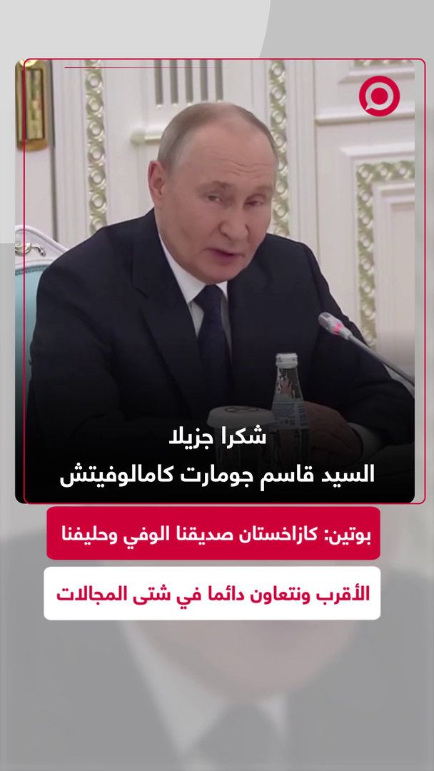 "حجم التبادل التجاري بين موسكو وأستانا ينمو باستمرار".. الرئيس الروسي فلاديمير بوتين يعرب عن شكره للرئيس الكازاخستاني قاسم جومارت توكاييف، على حفاوة الاستقبال، مؤكدا على عمق ومتانة العلاقات بين شعبي البلدين الصديقين.