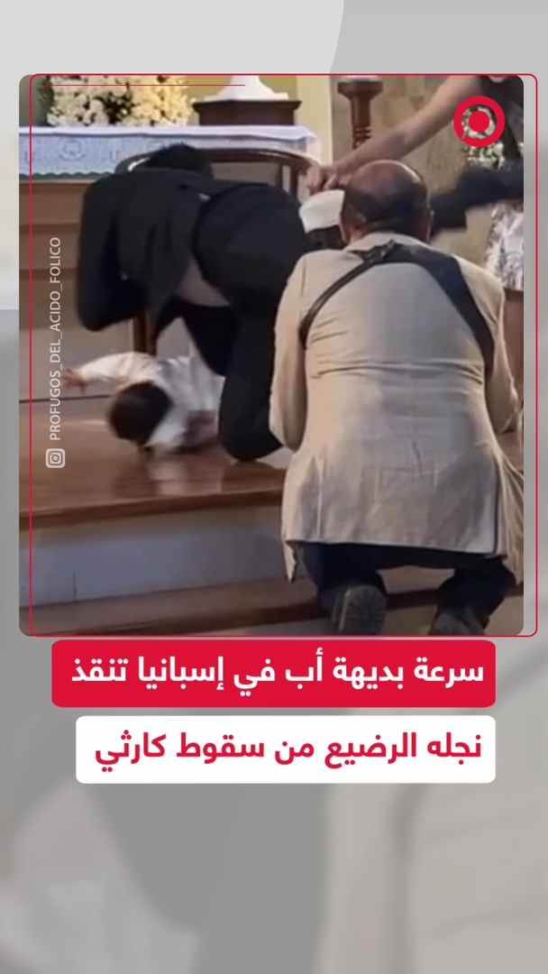صورة تذكارية كادت تتحول لحادث مروع 😱.. سرعة بديهة أب تنقذ نجله الرضيع من سقوط كارثي خلال جلسة تصوير في إسبانيا.