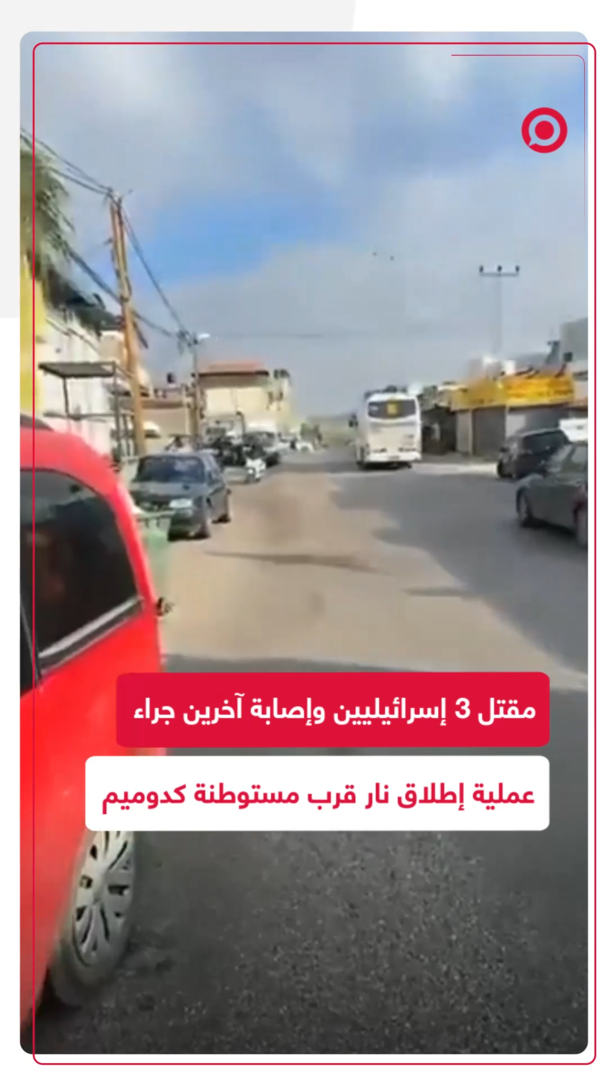الإسعاف الإسرائيلي يعلن عن مقتل 3 أشخاص وإصابة آخرين، جراء عملية إطلاق نار قرب مستوطنة "كدوميم" شمالي الضفة الغربية، ووفقا لوسائل إعلام إسرائيلية فإن منفذ العملية أطلق النار على حافلة ومركبة ثم لاذ بالفرار.
