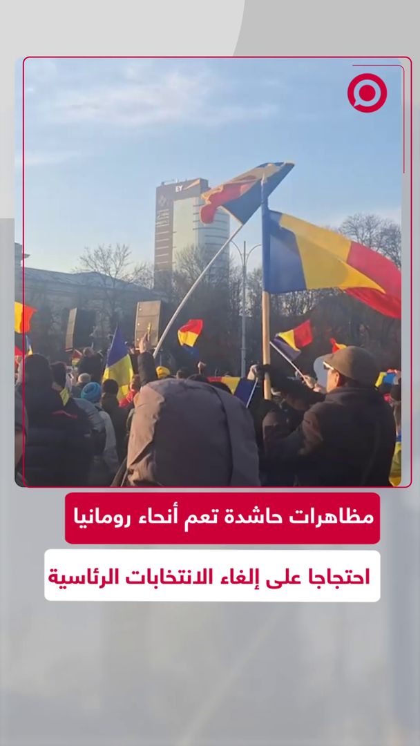 رومانيا تشهد احتجاجات حاشدة بعد إلغاء الجولة الثانية من الانتخابات الرئاسية من قبل المحكمة العليا في البلاد، بعد فوز كالين جورجيسكو في الجولة الأولى.