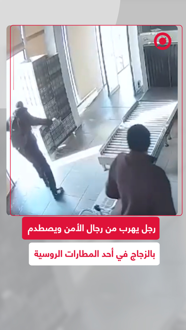 الباب الزجاجي منعه من الفرار.. رجل يهرب من رجال الأمن في مطار بتروبافلوفسك-كامتشاتسكي الروسي ليصطدم بالباب الزجاجي ويتم القبض عليه