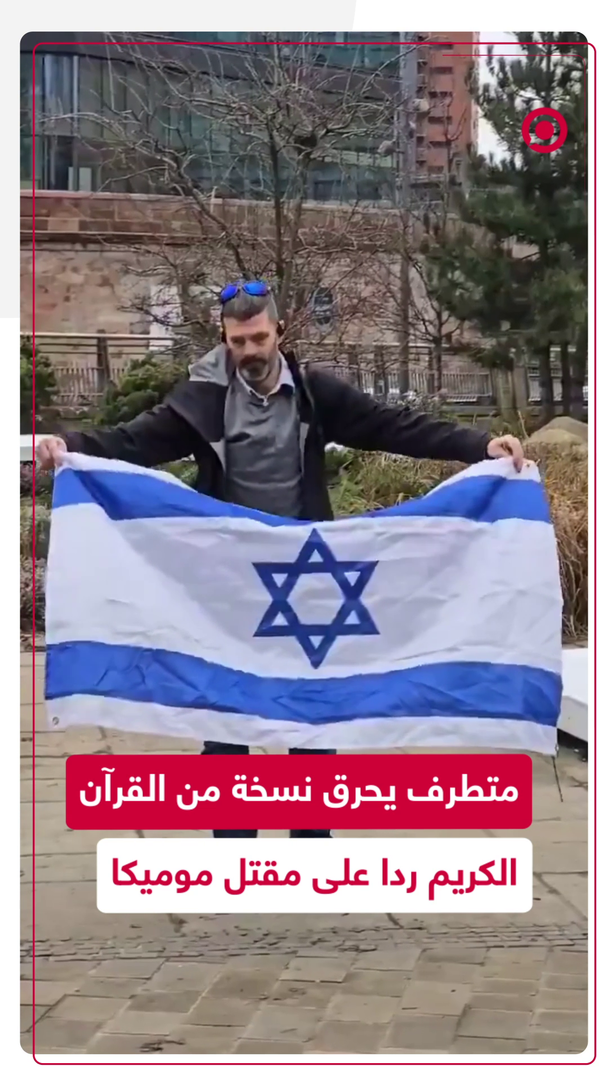 رجل متطرف يحمل علم إسرائيل في مدينة مانشستر البريطانية، يحرق نسخة من القرآن الكريم ردا على مقتل حارق القرآن سلوان موميكا، حيث أفادت المصادر أن الشرطة ألقت القبض عليه بتهمة التحريض على الكراهية.