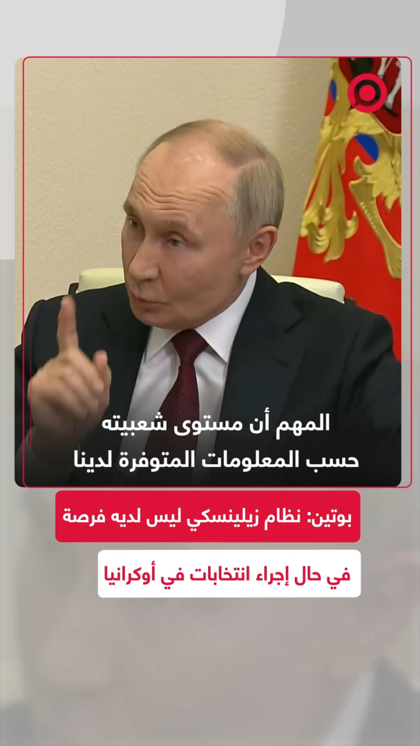 "شعبية زالوجني أكثر بمرتين من زيلينسكي".. الرئيس الروسي فلاديمير بوتين يؤكد أن نظام زيلينسكي يتمتع بشعبية منخفضة مقارنة بمنافسيه وليس لديه أي فرصة للفوز في حال إجراء انتخابات في أوكرانيا.