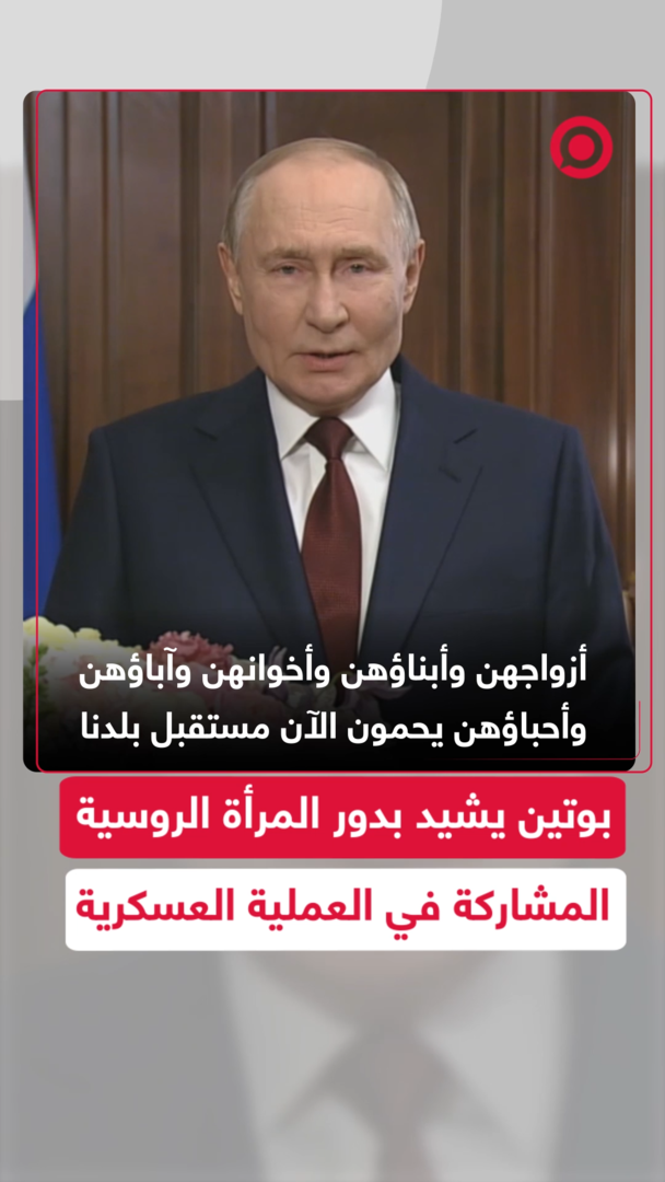 بمناسبة اليوم العالمي للمرأة.. الرئيس الروسي فلاديمير بوتين يوجه تهنئة خاصة للنساء الروسيات المشاركات في العملية العسكرية الخاصة.