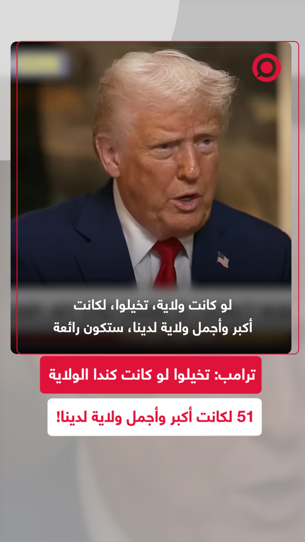 "لو كانت كندا ولاية، تخيلوا، لكانت أكبر وأجمل ولاية لدينا".. الرئيس الأمريكي دونالد ترامب يستمر في الضغط على كندا بتصريحاته التي تعكس رغبته في ضمها للولايات المتحدة الأمريكية لتصبح الولاية الـ51، ويتوقع تحولها إلى أجمل ولاية أمريكية.