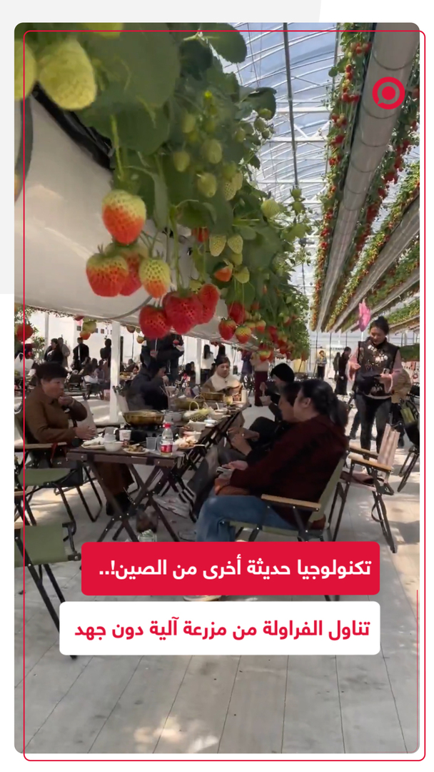 التكنولوجيا الصينية تجعل الحياة أسهل.. مستخدمو شبكات التواصل الاجتماعي الصينية تداولوا مقطع فيديو من مطعم يحتوي على مزرعة آلية يمكنك من خلالها تذوق الفراولة الطازجة أثناء تناول الطعام.