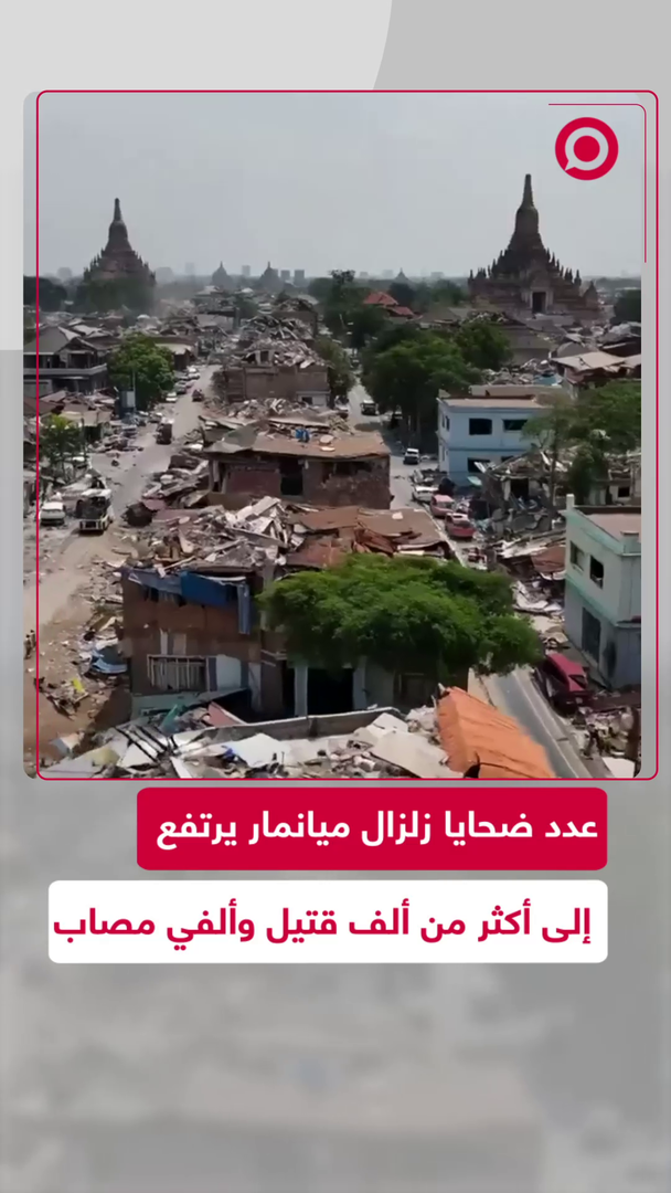 وسائل إعلام رسمية تعلن أن عدد قتلى الزلزال المدمر الذي ضرب ميانمار ارتفع إلى أكثر من ألف قتيل وألفي مصاب، بالإضافة إلى عشرات المفقودين.