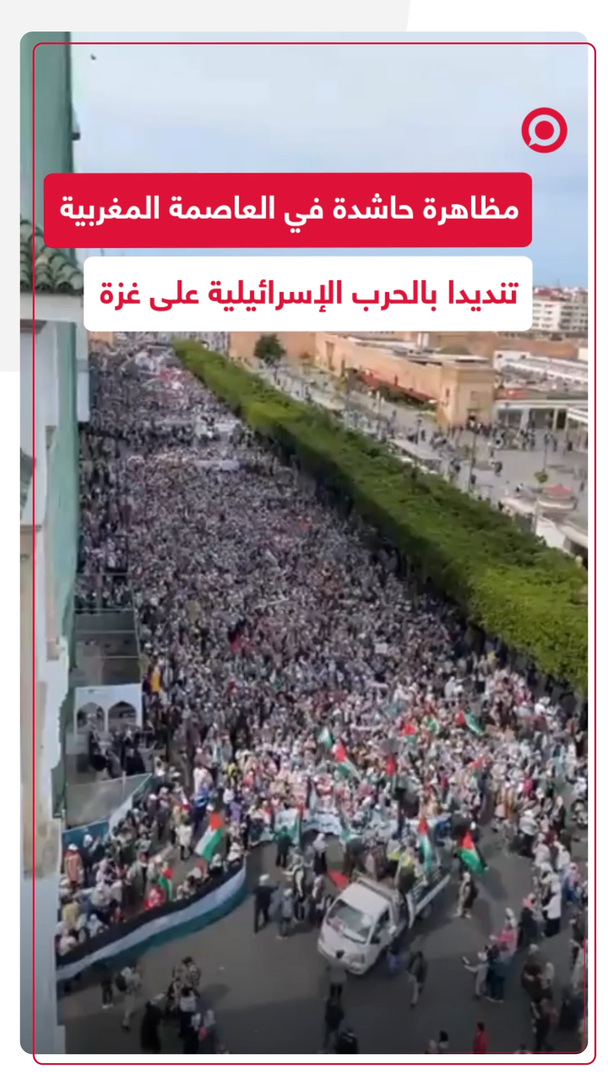 المغرب.. مظاهرة حاشدة انطلقت في شوارع العاصمة الرباط دعما لأهالي غزة وتنديدا بالحرب الإسرائيلية على القطاع حيث رفع المشاركون شعارات تطالب بوقف الحرب الإسرائيلية على القطاع، وحملوا رسائل تضامن مع أهالي غزة.