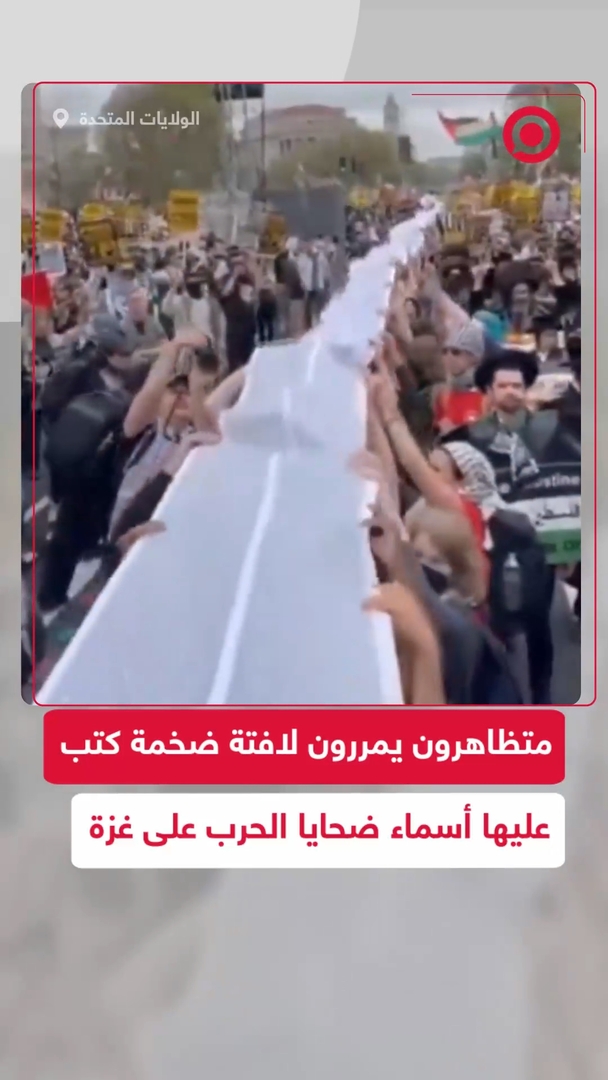 لافتة ضخمة حملت آلاف الأسماء.. متظاهرون في واشنطن يوثقون ضحايا الحرب الإسرائيلية على غزة بطريقة مؤثرة، وسط مطالبات بوقف العدوان ودعم حقوق الفلسطينيين.