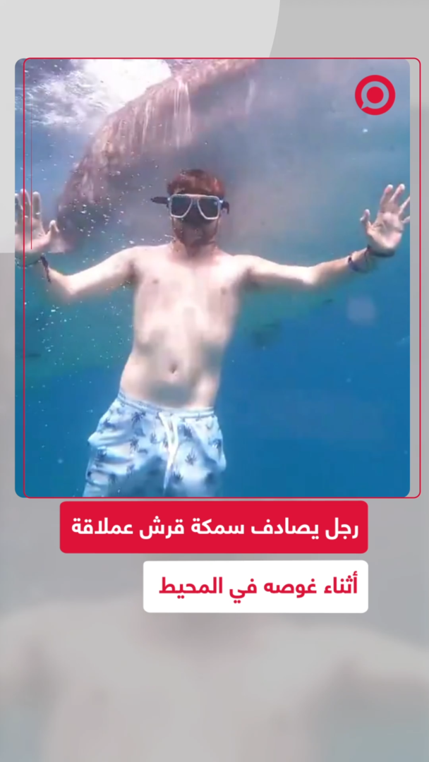 فيديو يظهر ذعر رجل أثناء غوصه في المحيط، حيث صادف بشكل مفاجئ سمكة قرش ضخمة.