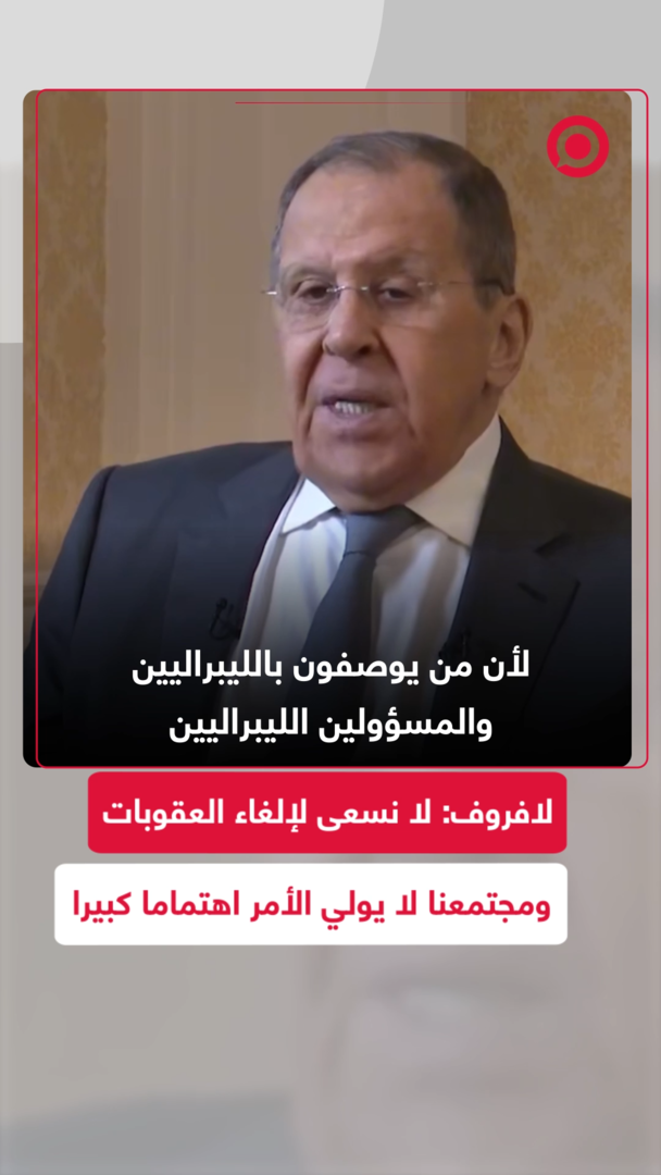 وزير الخارجية الروسي سيرغي لافروف، يؤكد أن روسيا لا تلاحق أحدا ولا تطلب إلغاء العقوبات المفروضة عليها، كما أوضح أن المخاوف الداخلية بشأن حماية إنجازات الاكتفاء الذاتي الاقتصادي تعد أولوية.