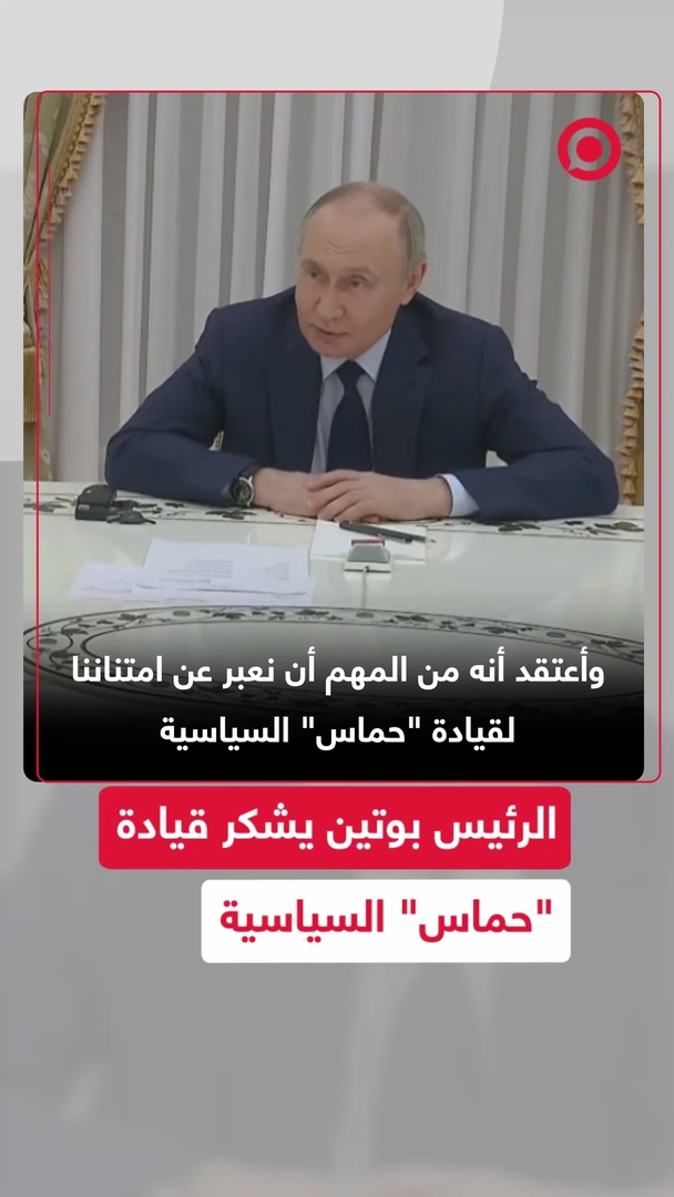 "نعبر عن امتناننا لقيادة حـ.ـمـ،ـاس السياسية".. الرئيس الروسي فلاديمير بوتين، يشكر حركة "حماس" عقب إفراجها عن المحتجز الإسرائيلي الروسي ألكسندر تروفانوف من قطاع غزة، في صفقة جرت خلال شهر فبراير الماضي.