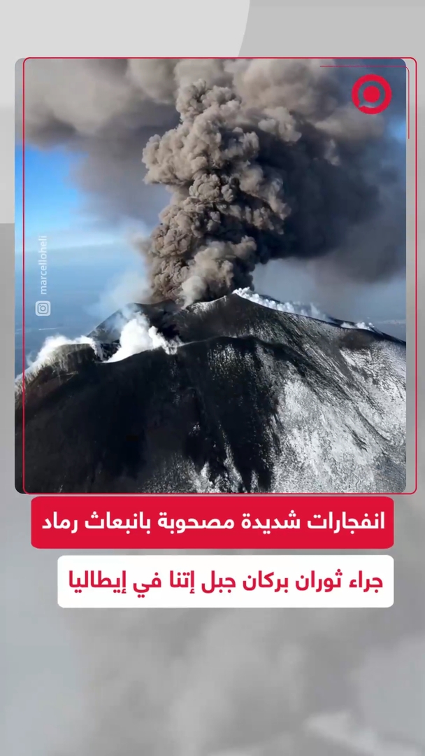 ثوران مرعب 🌋.. مشاهد مصورة من الجو تظهر انفجارات قوية ورماد كثيف ينبعث من فوهة بركان جبل إتنا في صقلية الإيطالية. هل تعتقد أن مثل هذه البراكين يجب أن تعتبر مناطق مغلقة أمام السكان والسياح؟